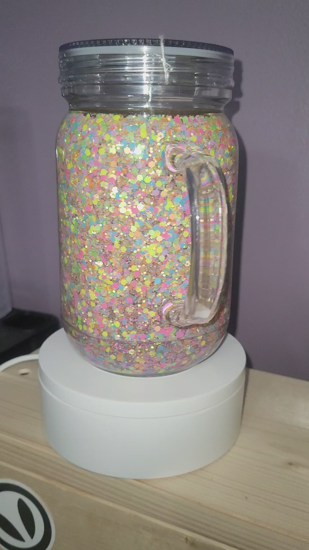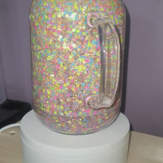 20oz Mason Snow Globe Tumbler. Rainbow mix, fast flow. Living the dream reaper decal
