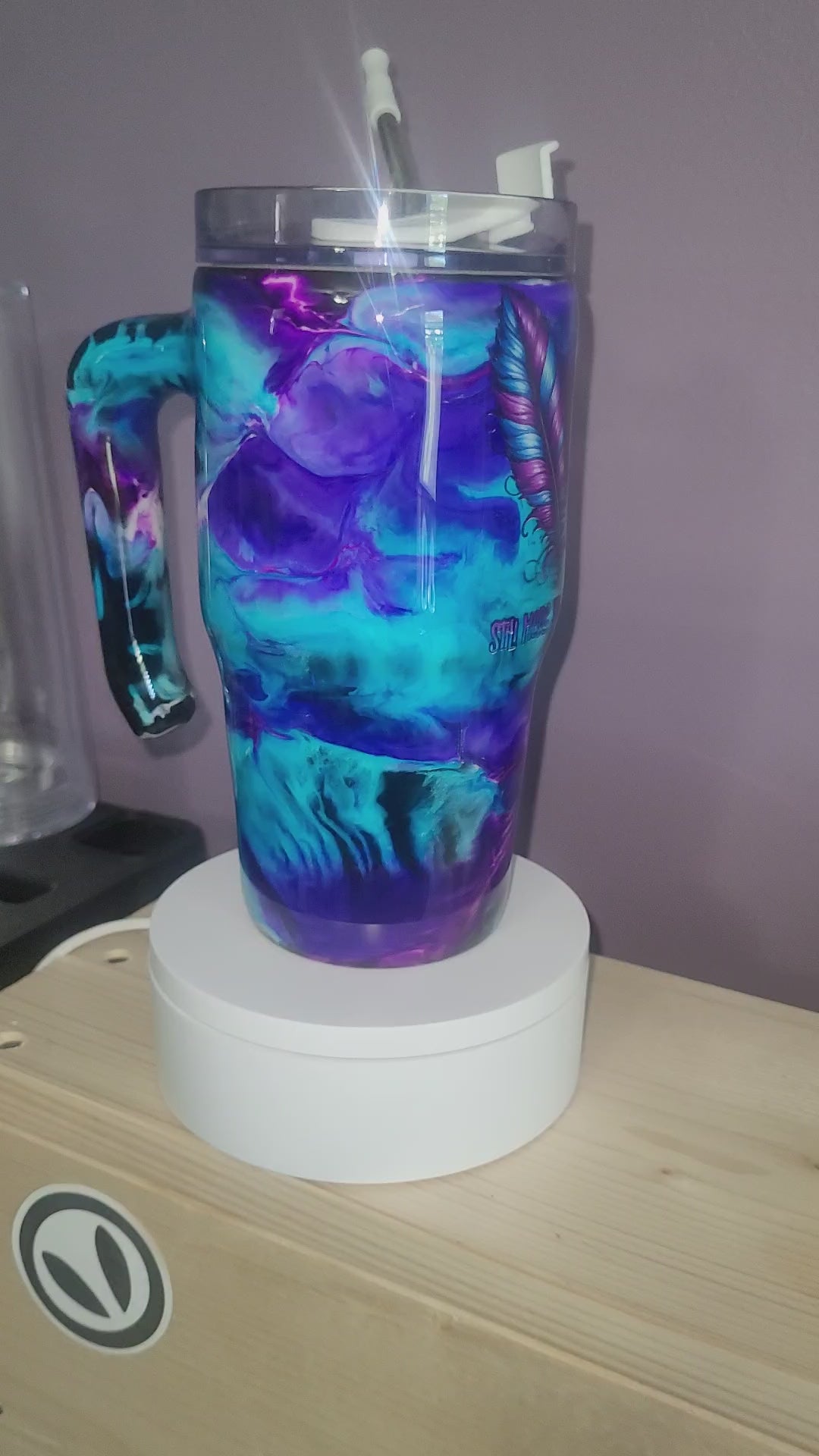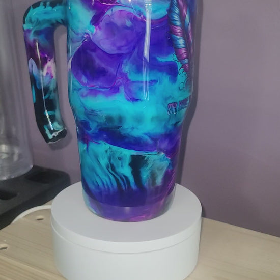 20oz Grippy Stainless steel. Purple Teal swirl. Suicide Awarness Decal