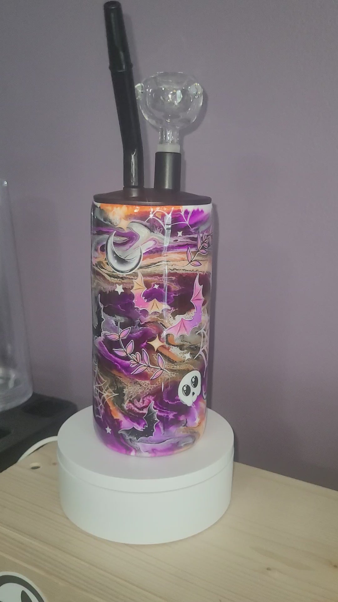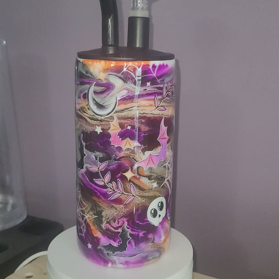 15oz Hookah. Stainless steel. Orange, Purple, Silver, Black ink swirl. With skull a web decal