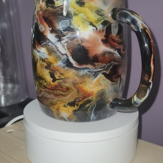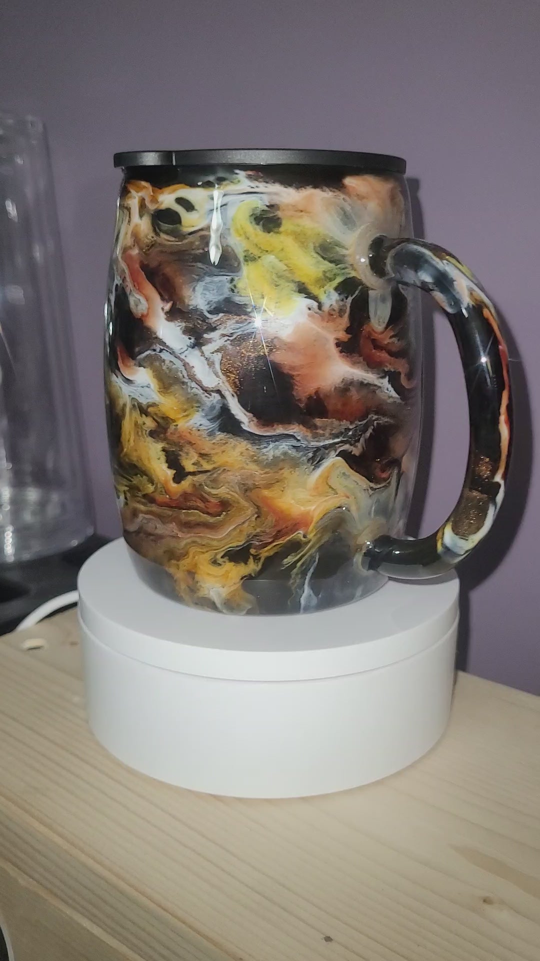 14oz coffee mug stainless steel. Chaos ink swirl.