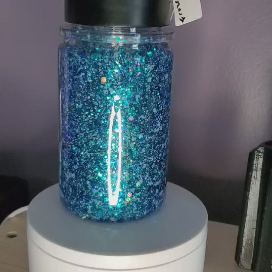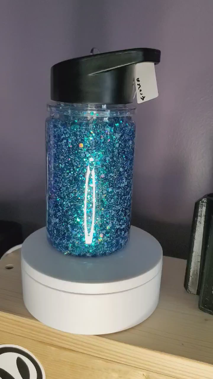 10oz Sport top snow globe tumbler, blue mix glitter, fast flow, frozen decal