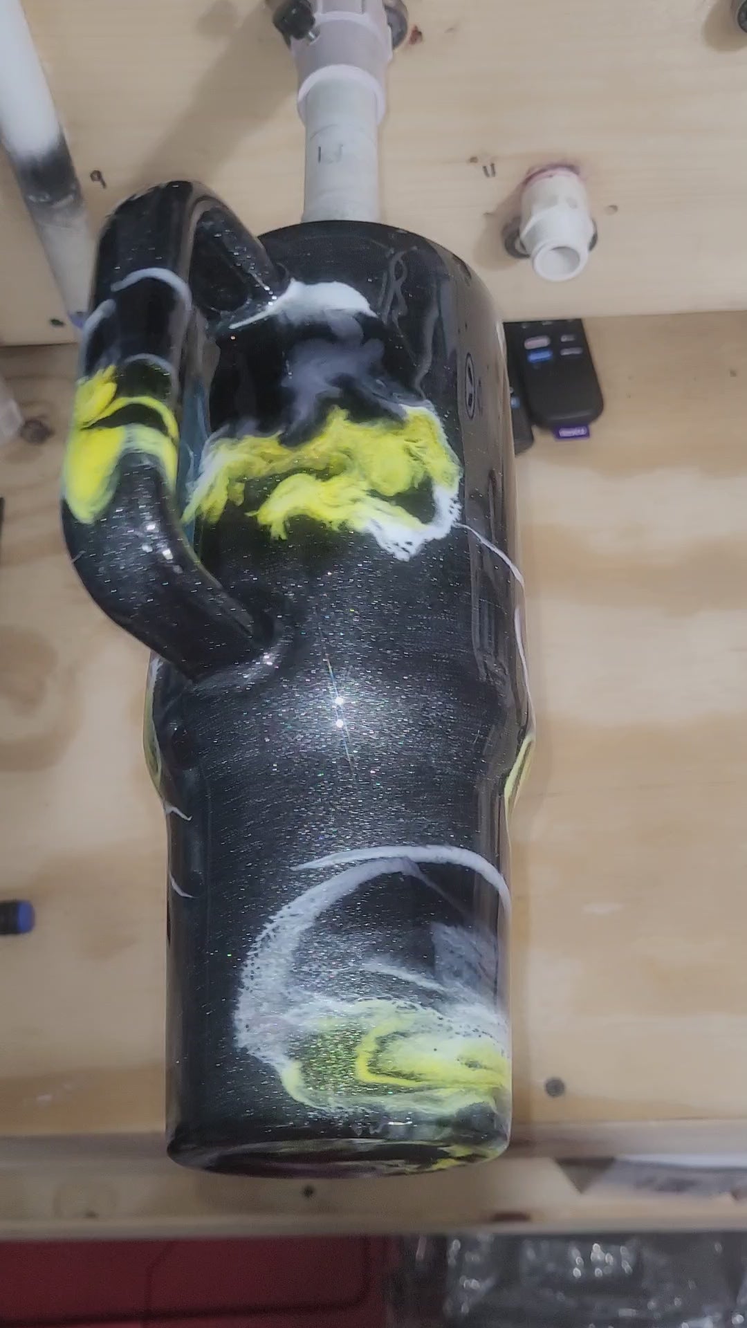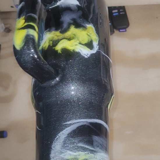 40 Oz Big Swig. Grey Mica Base with silver, yellow, black suspension ink swirl.