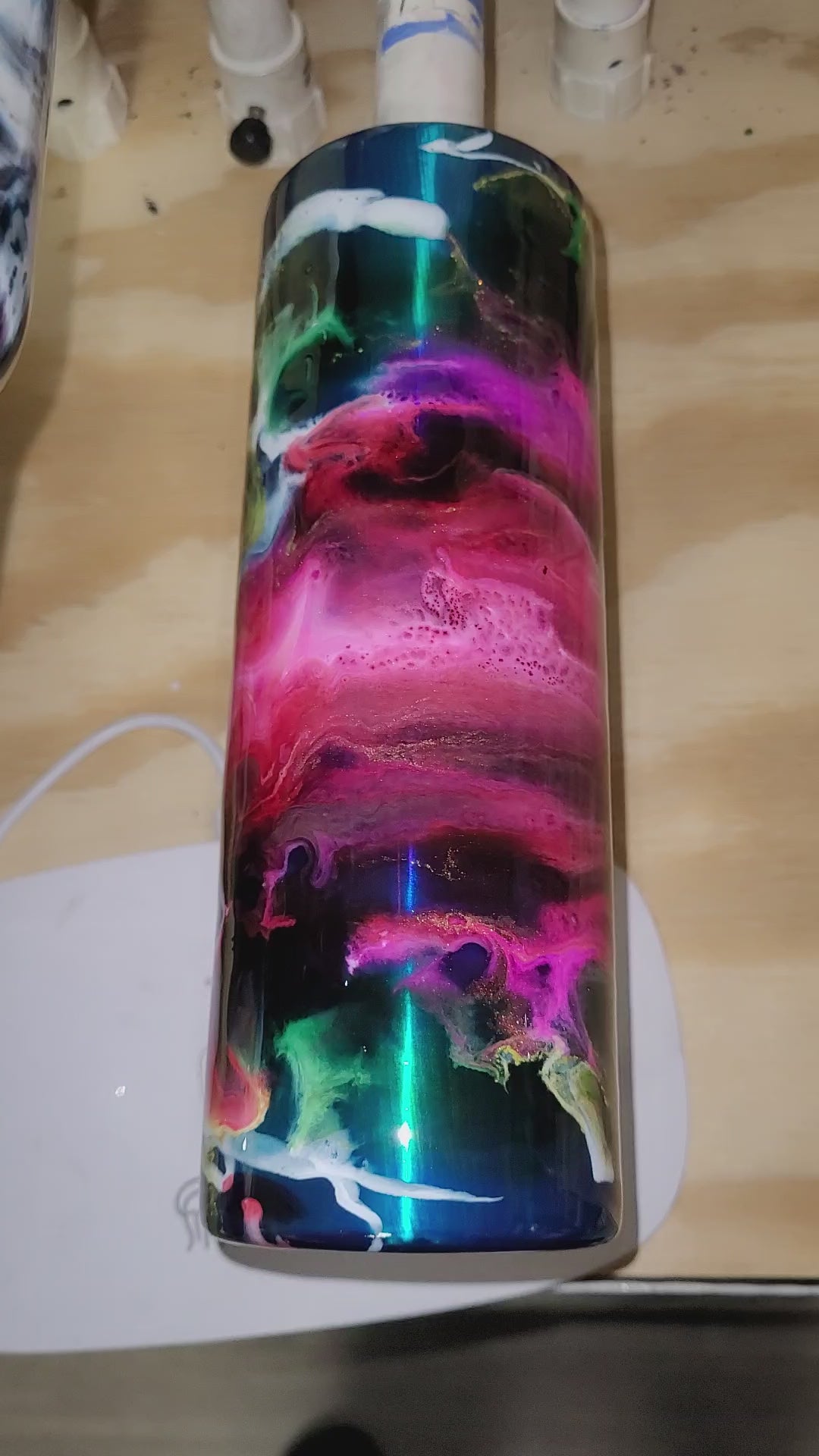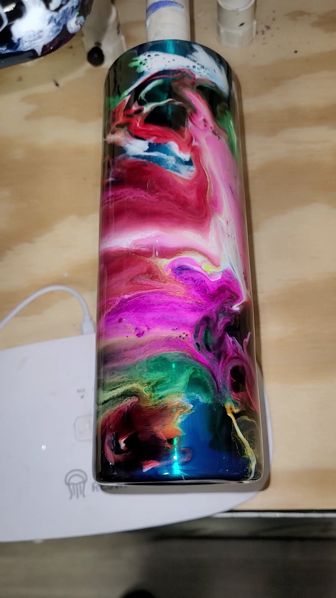 20Oz Skinny Stainless steel tumbler. Karon Picked and made. Turquoise Blue glaze base