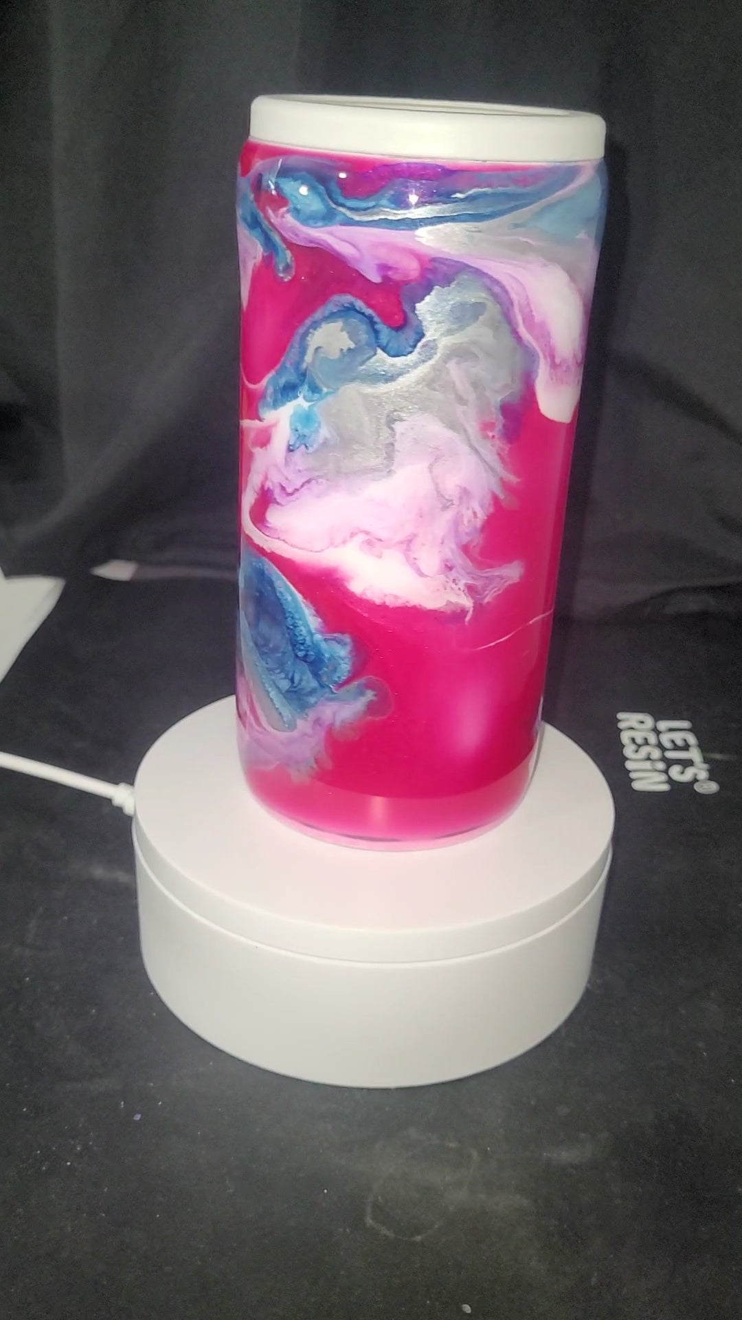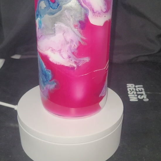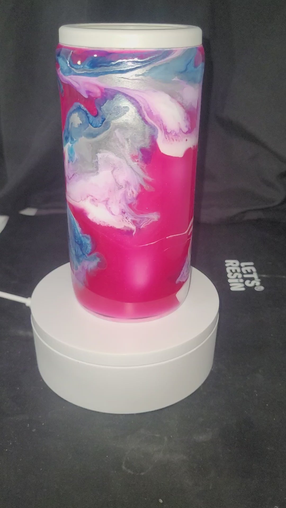 12oz stainless slim can koozie, Pink mica glow base. Blue purple silver swirl