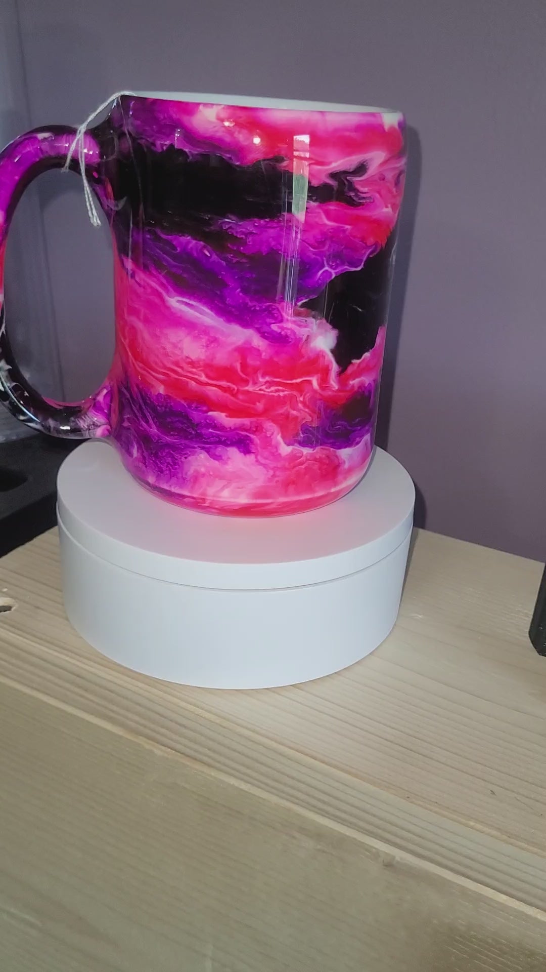 15oz Ceramic coffee mug. Pink, purple,black in swirl