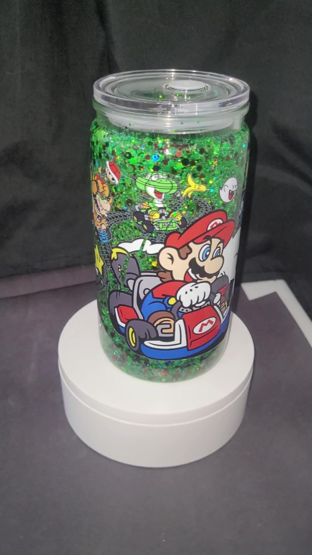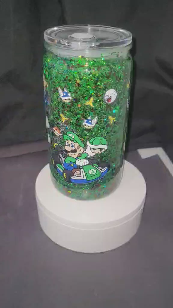 16oz Snow Globe Tumbler Green, Coffee, Yellow, Black, Mario (Karson Made)