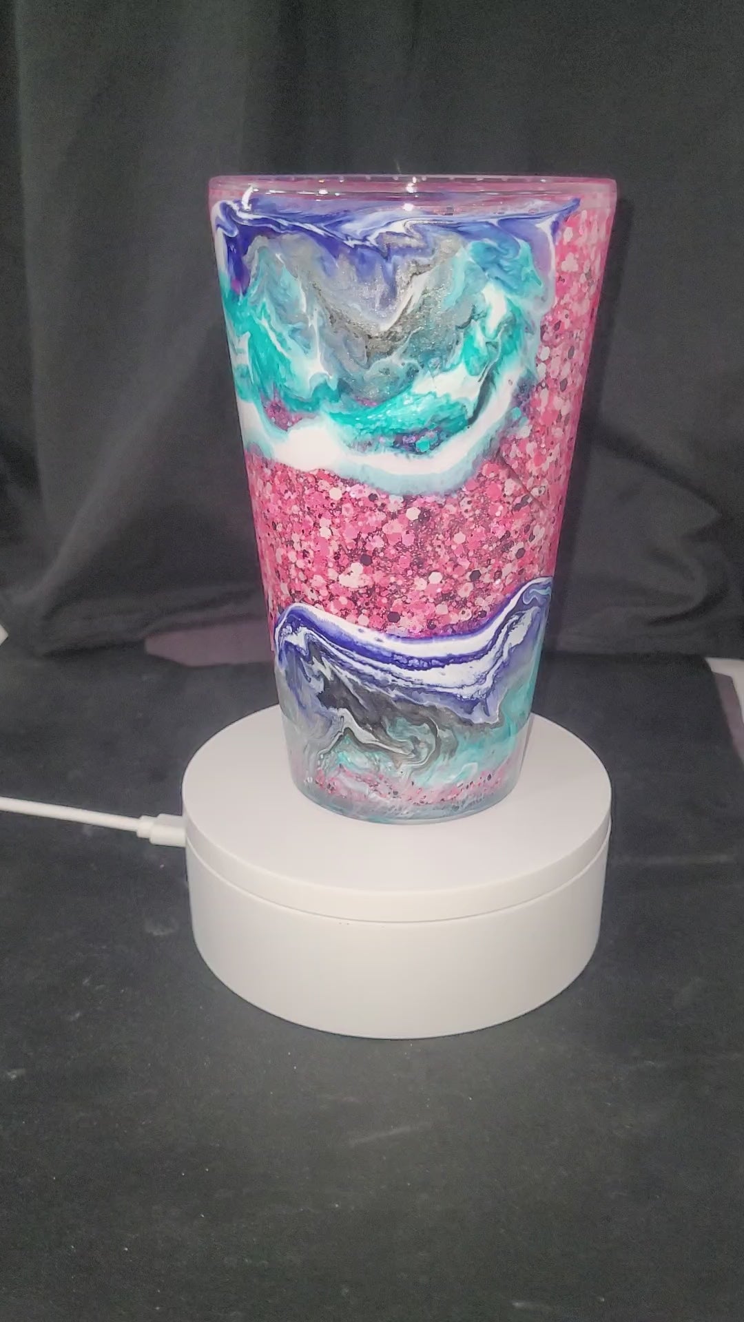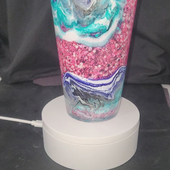 1028 ~ 16oz Taper. Snow Globe Tumbler Ink Swirl