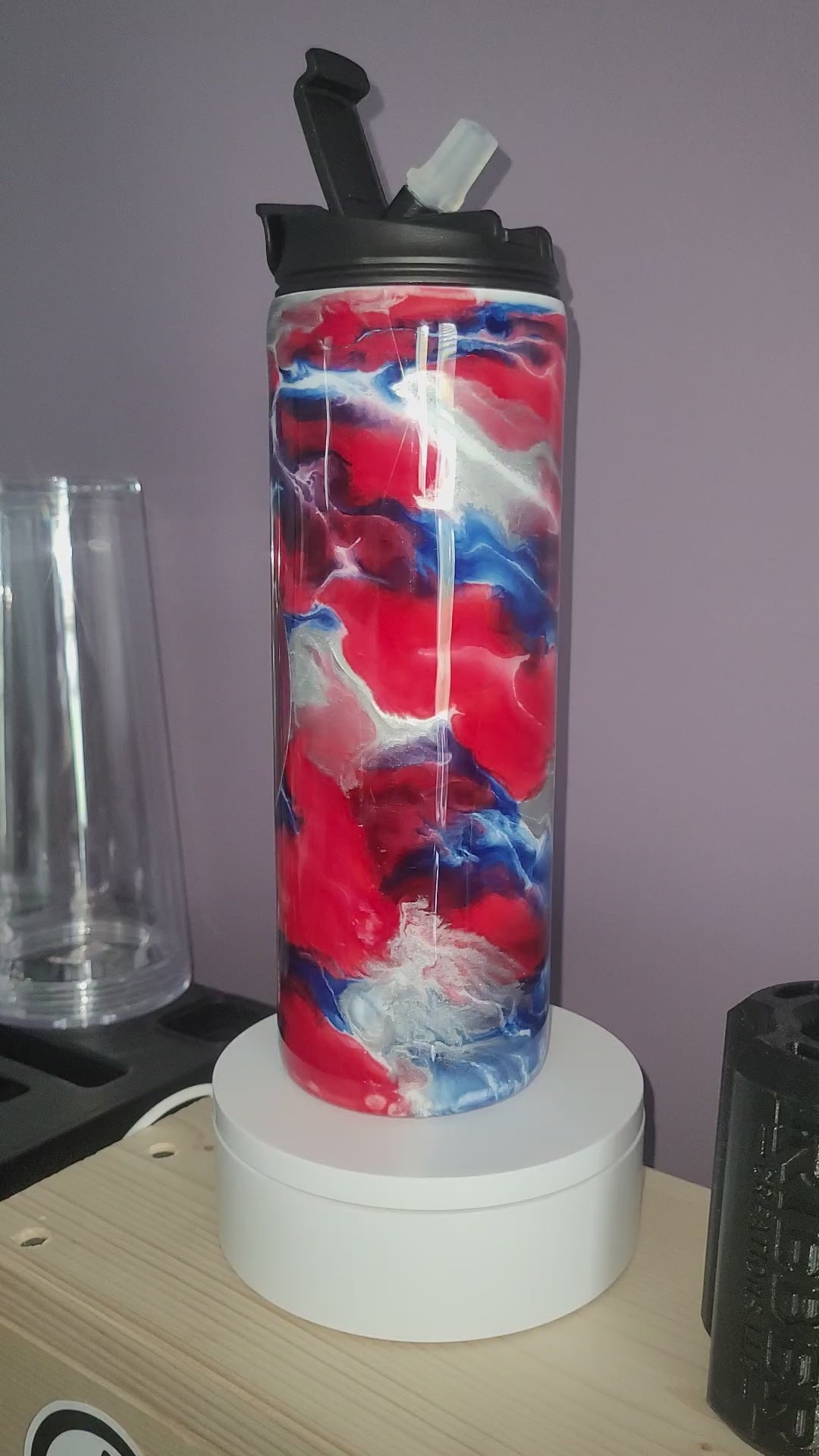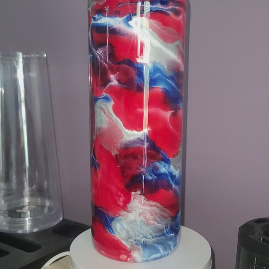 18oz Dual Flip Stainless steal tumbler ink swirl. Chaos Inks - Wee Woo, Overalls. Silver. With Captain America Shield.