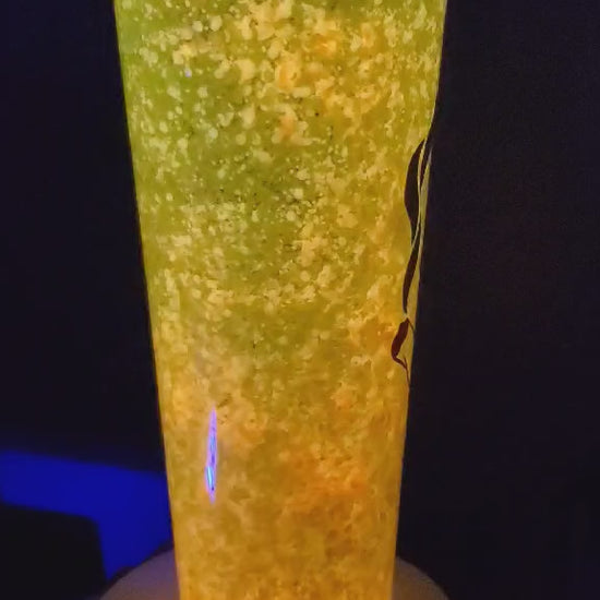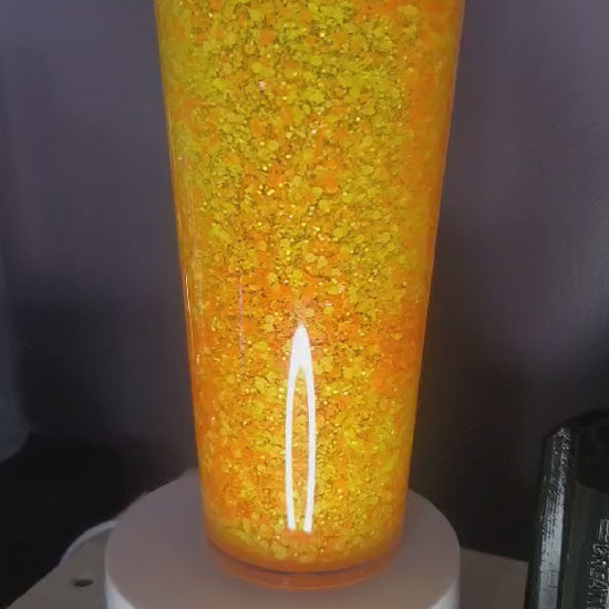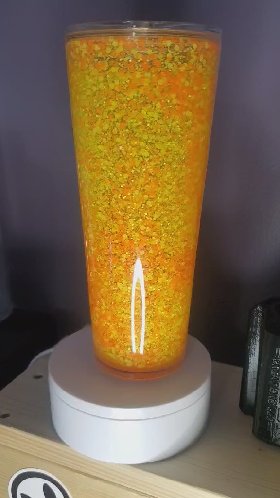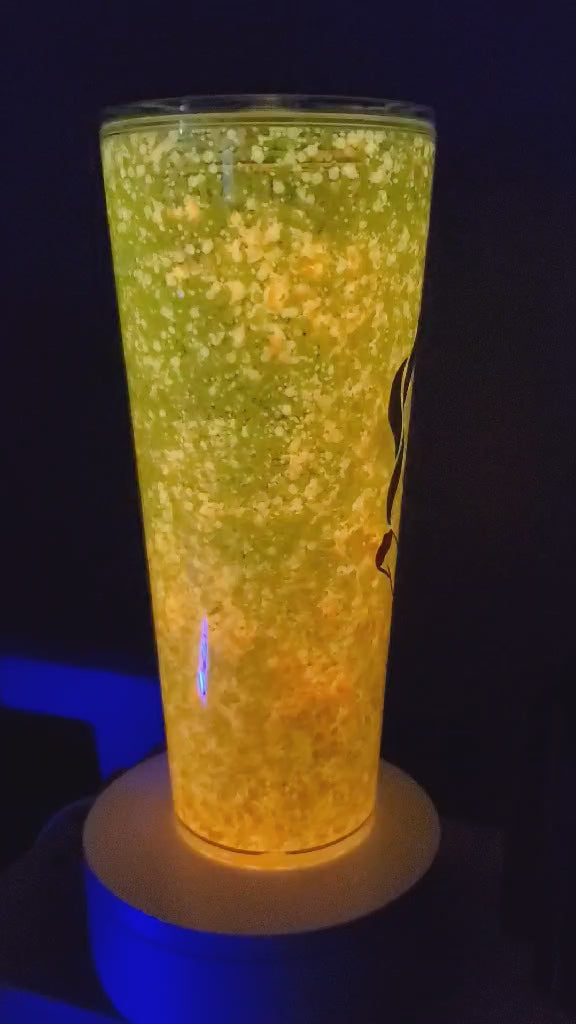 30oz snow globe, glow orange & yellow glitter mix weed decal, medium flow