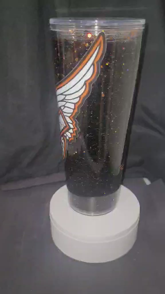 1026~ 24oz snow globe tumbler, Black & Orange Mix