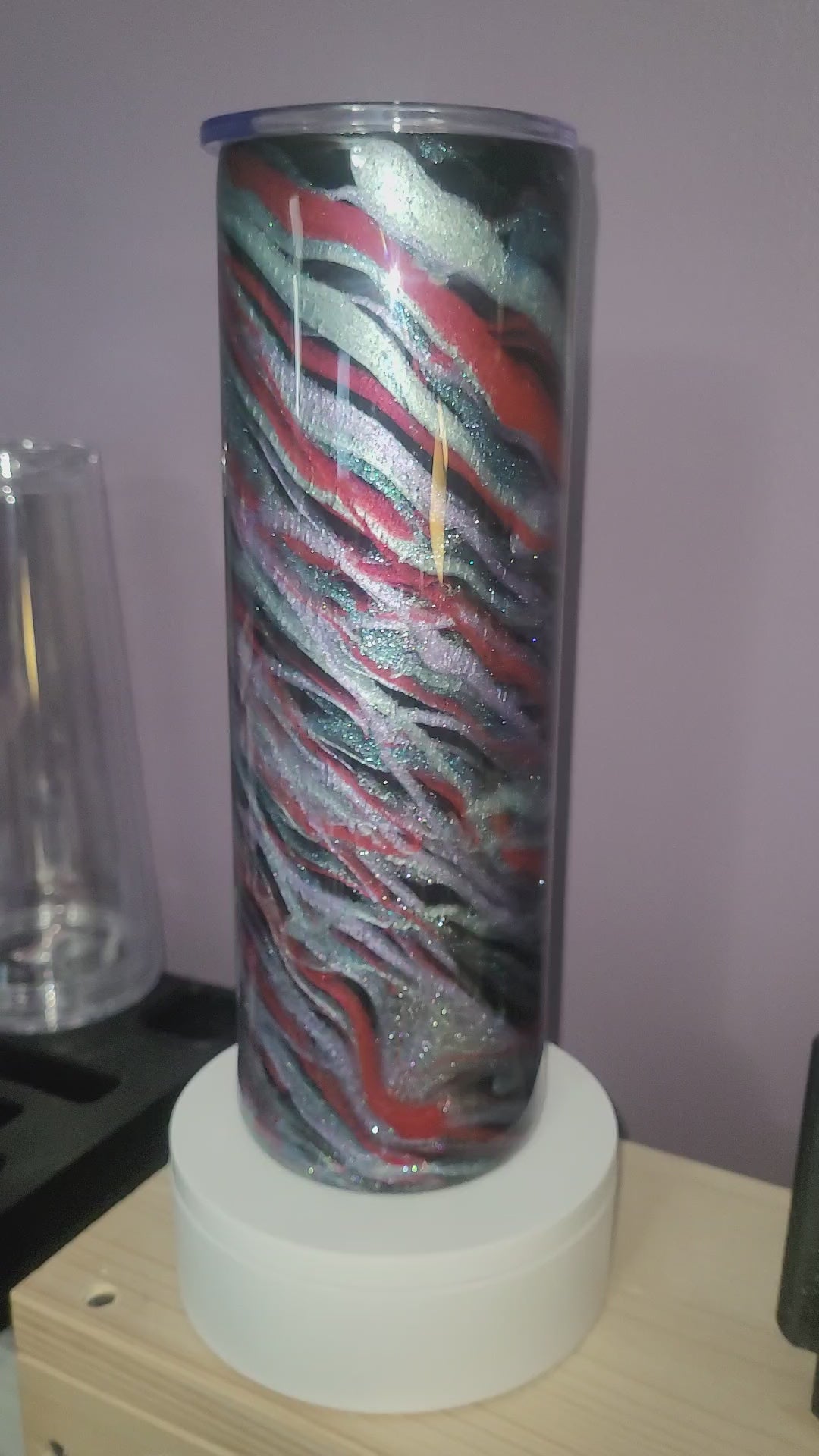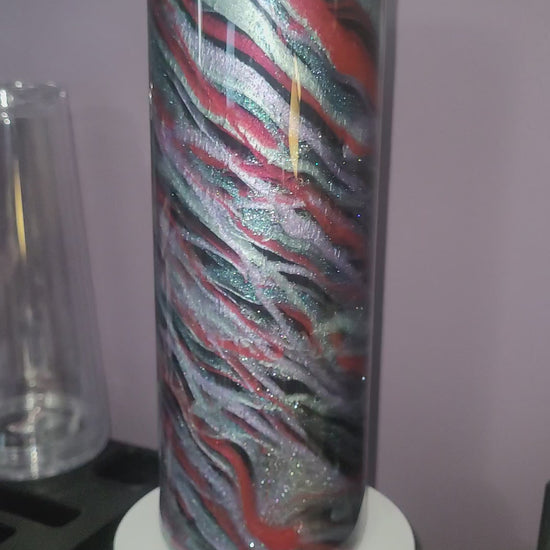 30oz Skinny Stainless Blured Lines. Red,blue,green,purple & white mica