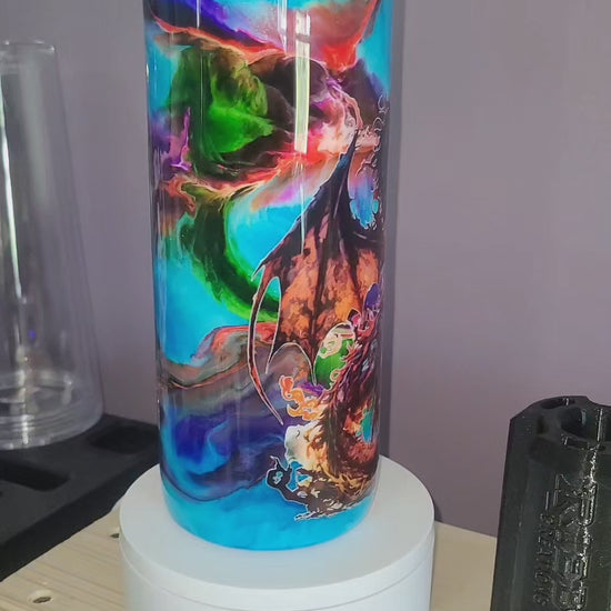 30oz Skinny Stainless steel. Ink Swirl with dragon decal
